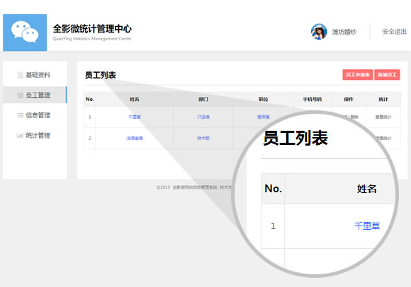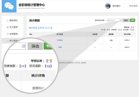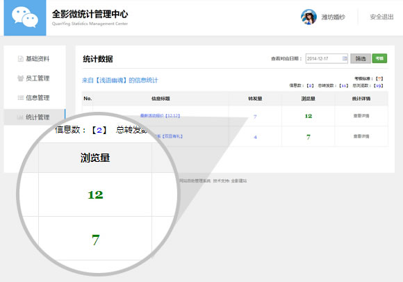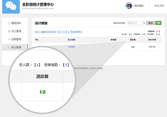自动计算出每个员工分享信息的浏览量,包含员工朋友转发的浏览量,计入员工考核。