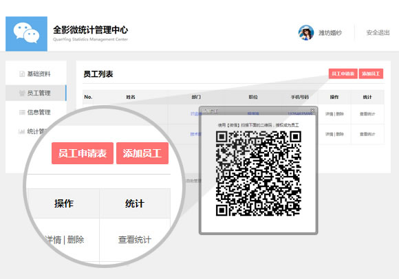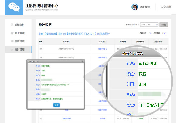 与个人微信无缝连接,使每一个员工都成为公司微营销的一份子,实现全员营销计划。